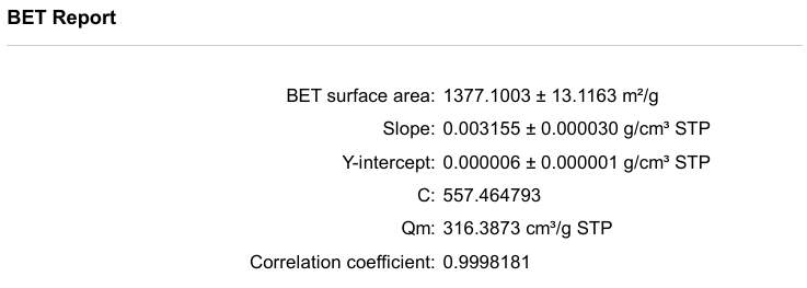 图4 椰壳活性炭的比表面积结果