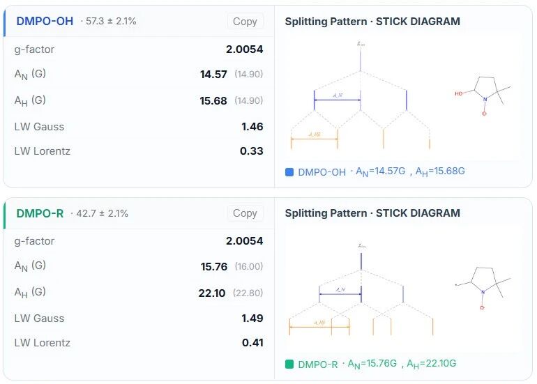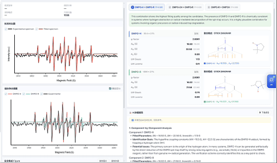 支持单 / 双 / 三组分自旋捕获体系,不限数据格式,结合实验信息精准分析。