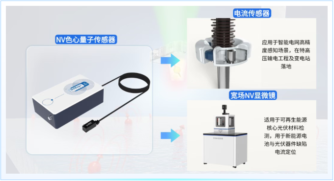 基于金刚石NV色心电流传感器,已应用于智能电网高精度感知场景,在特高压输电工程及变电站落地,具备非接触、宽量程、高精度特点;在新能源汽车电池管理上,能够实现对电池状态的精准评估;基于NV色心的量子磁成像技术,则适用于可再生能源核心光伏材料检测,用于新能源电池与光伏器件缺陷电流定位,助力提升新能源电池组件的检测效率与可靠性。