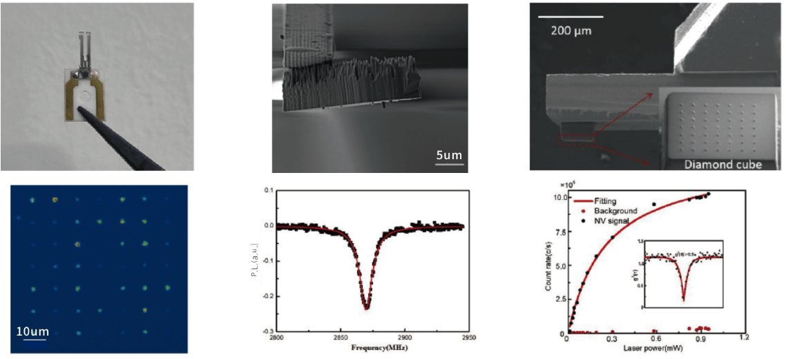 扫描NV探针显微镜(Scanning NV Probe Microscope,SNVM)是一款结合了金刚石氮-空位色心(Nitrogen-Vacancy, NV)光探测磁共振(Optically Detected Magnetic Resonance, ODMR)技术和原子力显微镜(Atomic Force Microscope,AFM)扫描成像技术的量子精密测量仪器,可用于自旋电子学、多铁性材料、二维磁性材料、超导材料等材料的研究。